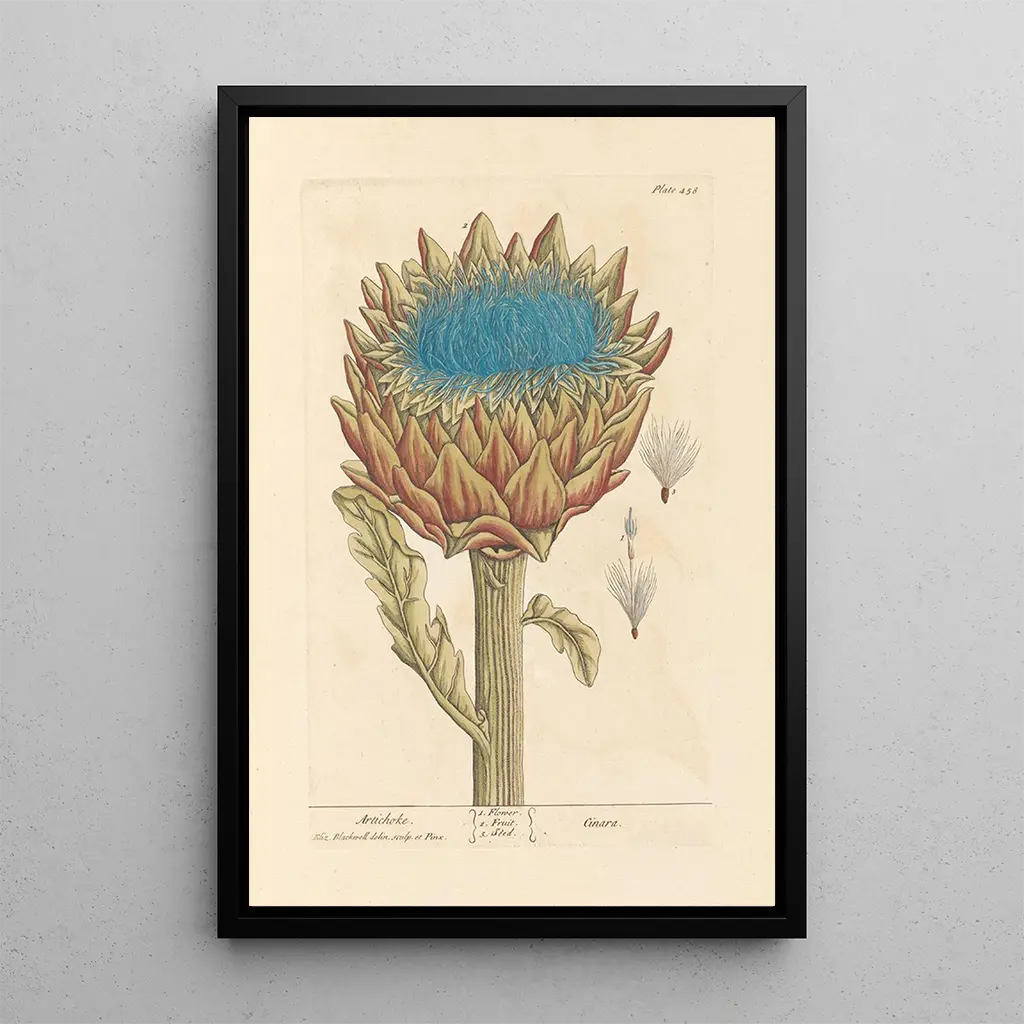 Elizabeth Blackwell, verksam på 1700-talet, är erkänd som en av de första kvinnorna att ägna sig åt botanisk illustration. Hennes arbete präglas av en passion för naturen och en önskan att göra vetenskapen tillgänglig för alla. Påverkad av de botaniska upptäckterna i sin tid, lyckades hon förena konst och vetenskap för att skapa verk som är både estetiska och informativa. "Artichok" ingår i en serie konsttryck som vittnar om hennes engagemang för att dokumentera sin tids flora, samtidigt som de lyfter fram växternas betydelse inom medicin och mat.