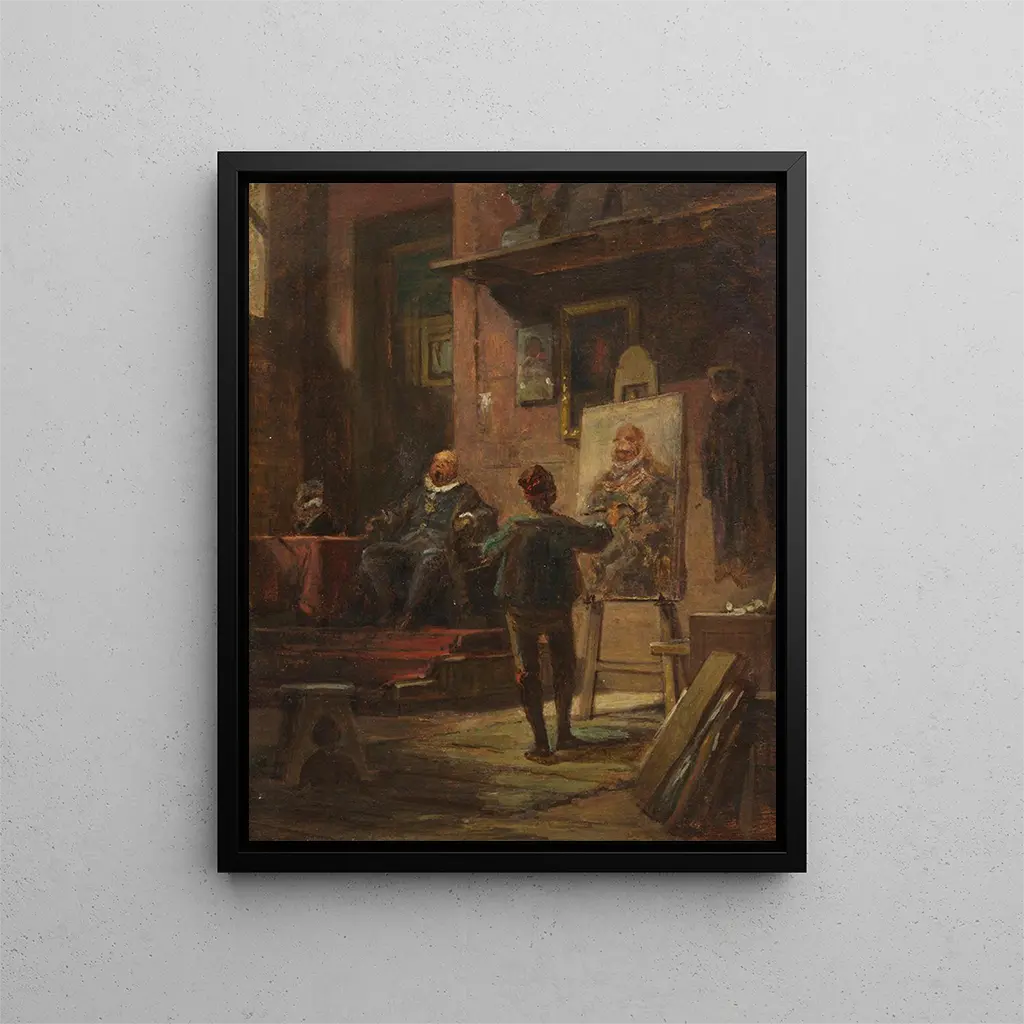 Konsttryck Le peintre dans l'atelier - Carl Spitzweg – Introduktion fängslande I det myllrande konstuniversum lyckas vissa verk fånga själva essensen av kreativitet och inspiration. "Le peintre dans l'atelier" av Carl Spitzweg tillhör denna utvalda kategori. Denna målning, som är emblematic för 1800-talet, för oss in i hjärtat av en konstnärs ateljé, en plats där fantasin förvandlas till verklighet. Spitzweg, med sin skarpa blick och sitt starka sinne för detaljer, bjuder in oss att utforska nyanserna i en konstnärs vardag, samtidigt som han avslöjar magin som utstrålar från varje penseldrag. Scenen utspelar sig i en intim atmosfär, vilket gör detta verk till en äkta hyllning till konstnärlig passion. Stil och unikhet i verket Carl Spitzwegs stil präglas av en finhet och ömhet som genomsyrar varje av hans kompositioner. I "Le peintre dans l'atelier" lyckas han kombinera realism och romantik, och ger en bild av konstnärens liv som är både trogen och poetisk. De varma färgerna och de mjuka ljusen skapar en lugn stämning, medan de noggranna detaljerna, som målarutrustning och skisser som hänger på väggarna, vittnar om en noggrann observation av vardagen. Verket utmärker sig också genom sin förmåga att framkalla universella känslor. Konstnären, upptagen av sitt arbete, personifierar jakten på inspiration, ett återkommande tema inom konst. Spitzweg lyckas fånga denna essens, vilket gör scenen både tillgänglig och djupt rörande. Konstnären och hans inflytande Carl Spitzweg, en ikonisk figur inom tysk konst, lyckades etablera sig som en av romantikens mästare. Hans karriär, präglad av en mångfald av teman som sträcker sig från vardagsliv till mer fantastiska scener, vittnar om en oöverträffad kreativ rikedom. Spitzweg har påverkat många konstnärer med sin unika syn på målning, där humor och melankoli blandas. Hans verk, ofta präglade av en viss nostalgi, inbjuder till eftertanke samtidigt som de hyllar skönheten i världen omkring oss. "Le peintre dans l'atelier" följer inte denna regel, eftersom den både förkroppsligar passionen för konst och ensamheten i att skapa.