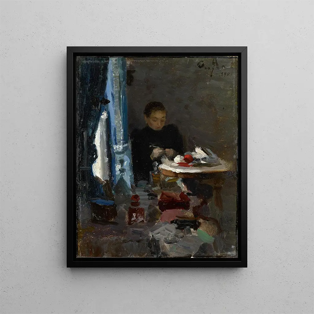 Alexej von Jawlenskys stil är ofta förknippad med expressionismen, men han överskrider de traditionella kategorierna med sin unika approach. "L mor till konstnärerna" utmärker sig med en djärv färgpalett, där nyanser av blått och rött flätas samman för att skapa en atmosfär som är både varm och melankolisk. Former är förenklade och stiliserade, vilket vittnar om en strävan efter essensen snarare än detaljer. Detta estetiska val gör att verket kan resonera med en stark emotionell kraft som berör betraktaren på djupet. Framställningen av den modersfiguren, både skyddande och inspirerande, förhöjs av ett mjukt ljus som omsluter motivet och skapar en nästan helig atmosfär. Detta verk är ett perfekt exempel på konstnärens förmåga att framkalla komplexa känslor genom enkla visuella medel.
