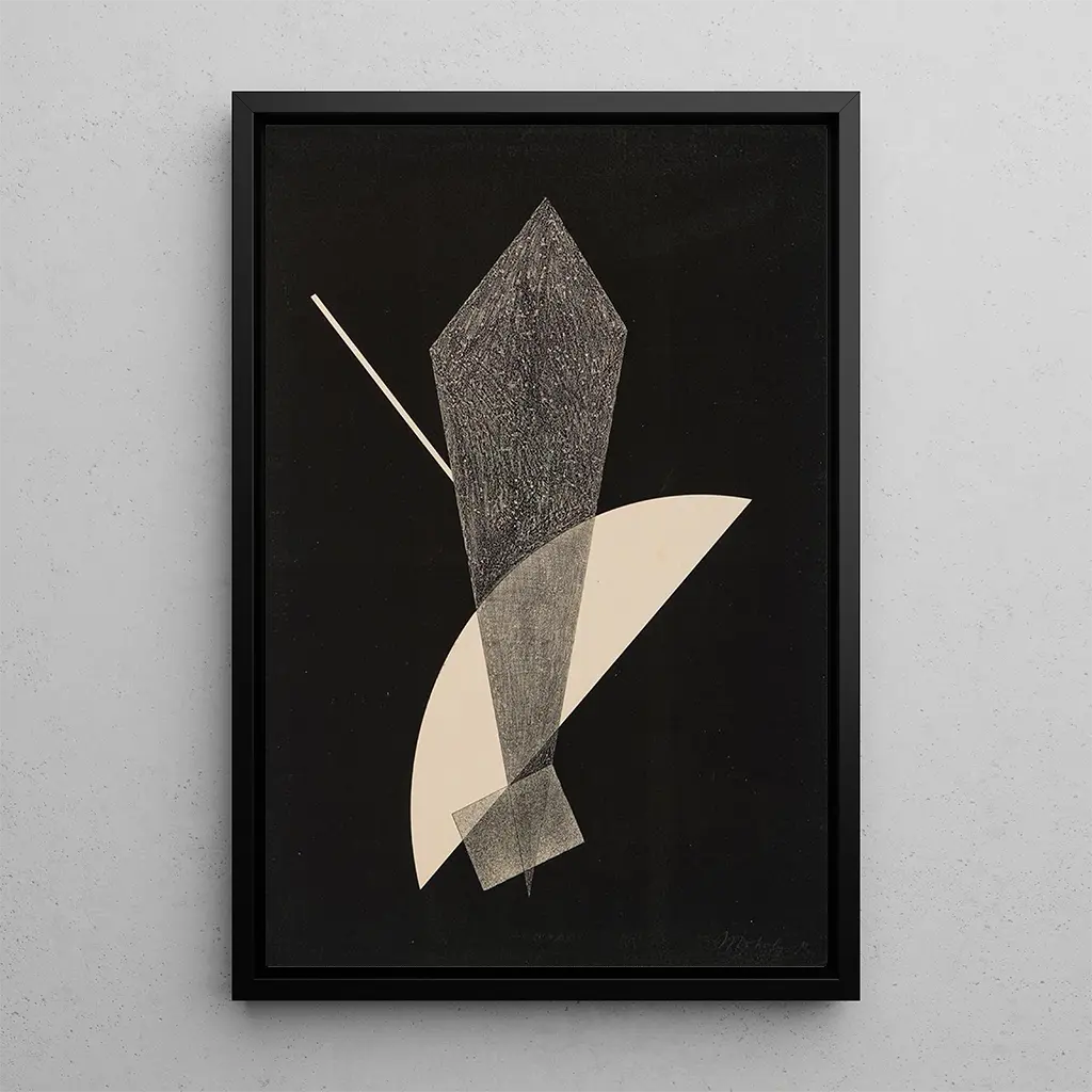 I "Construction V" fördjupar sig László Moholy-Nagy i en värld där geometri och ljus flätas samman med fascinerande precision. De kantiga formerna, ofta monokroma, skapar ett visuellt samtal som fångar ögat och stimulerar fantasin. Tekniken med collage och sammansättning av olika material ger verket en unik textur, medan användningen av ljus spelar en avgörande roll och förvandlar uppfattningen av volymer och utrymmen. Detta konsttryck förkroppsligar den avantgardistiska andan från Bauhaus, där varje element är noggrant utformat för att framkalla en känsla av rörelse och balans.