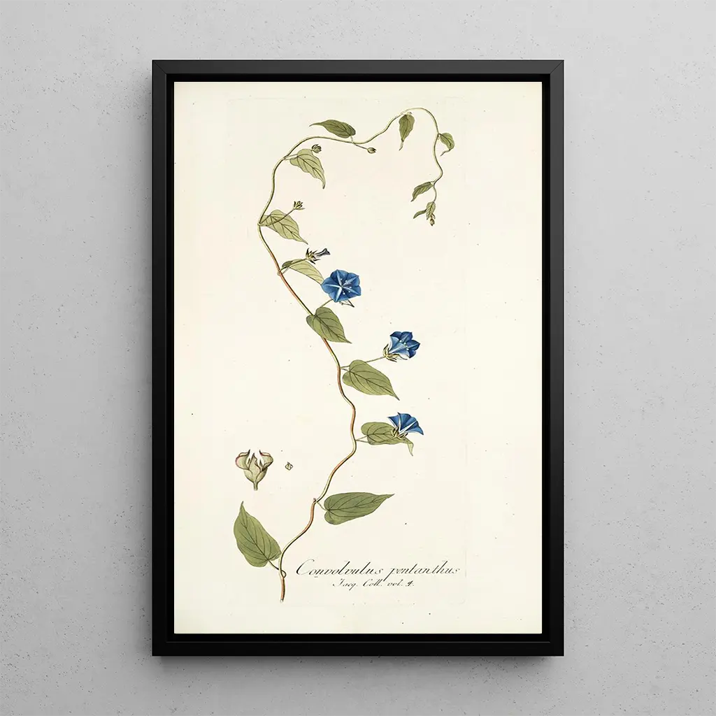 Konsttrycket av Convolvulus pentanthus är ett dekorativt val som kan försköna vilket som helst utrymme, oavsett om det är modernt eller klassiskt. Dess utskriftskvalitet garanterar en trohet mot färger och detaljer, vilket ger ett fängslande konstverk. Genom att integrera det i din inredning tillför du en touch av dynamik och värme till ditt hem. Detta konsttryck, rikt på färger, är perfekt för att liva upp ett vardagsrum, ett kontor eller ett sovrum, samtidigt som det hyllar den flyktiga skönheten hos blommorna.