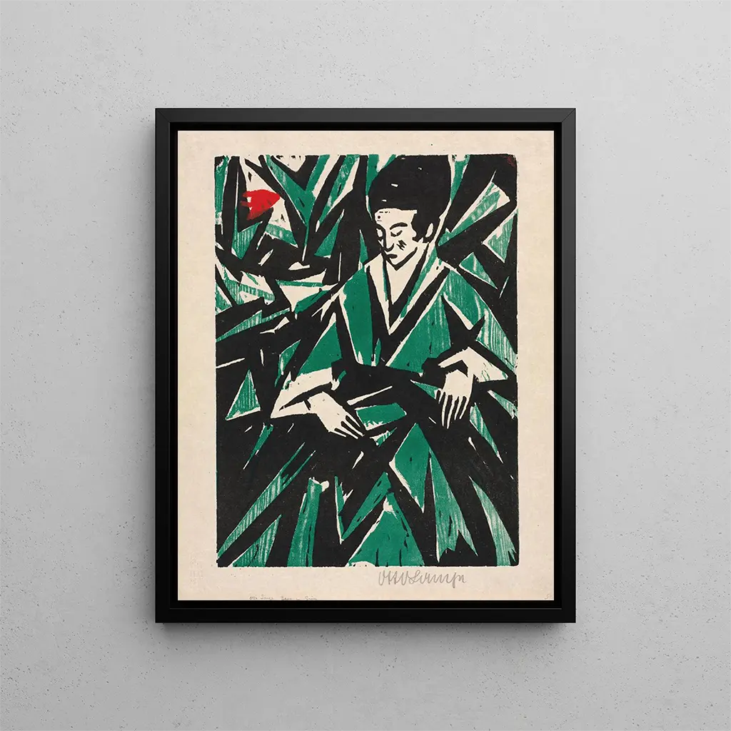 Otto Lange, tysk målare från början av 1900-talet, är ofta associerad med den symbolistiska rörelsen som förespråkar uttrycket av känslor och idéer genom form och färg som väcker associationer. Hans karriär, även om den är mindre känd än vissa av hans samtida, präglas av en ständig strävan efter skönhet och harmoni. Påverkad av tidens konstnärliga strömningar, lyckades Lange integrera element av naturen och mytologiska teman i sina verk. Hans förmåga att fånga essensen av sina motiv, som i Femme i grönt, vittnar om hans talang och betydelse i den konstnärliga scenen under sin tid.