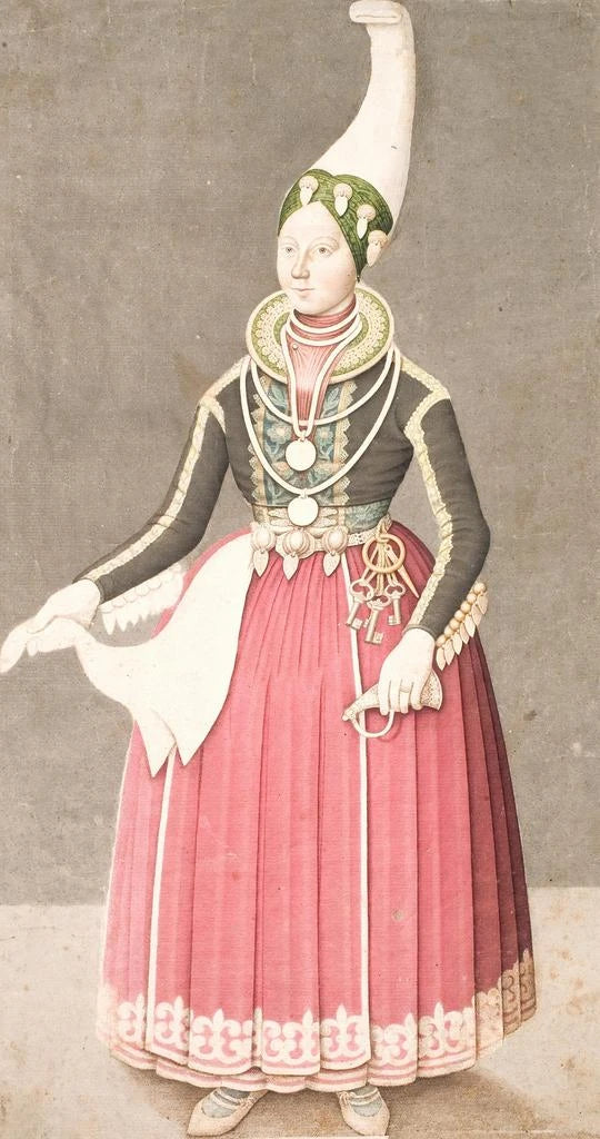 Målning av kvinna i isländsk bondeklädsel - Olavius | Konsttryck