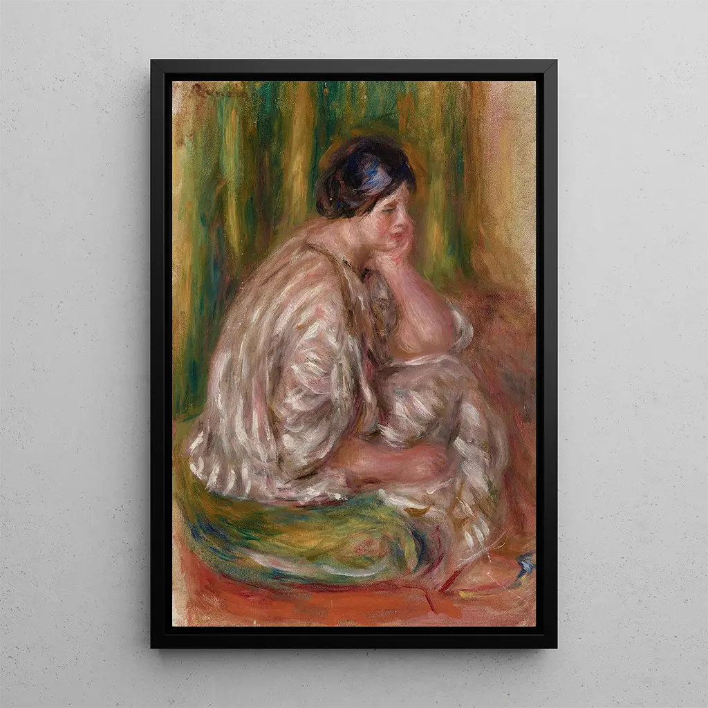 Konsttrycket av Femme i oriental kostym av Pierre-Auguste Renoir fördjupar oss i en värld av förfining och sensualitet. Tavlan, badad i varma och livfulla färger, framhäver en kvinna klädd i ett storslaget traditionellt kostym. De delikata detaljerna i hennes dräkt, kombinerat med den milda utstrålningen i hennes ansikte, skapar en intim och fängslande atmosfär. Renoirs flytande penseldrag, typiska för hans impressionistiska stil, ger ett påtagligt liv till detta verk och bjuder in betraktaren att beundra skönheten och grace hos denna kvinnliga figur.