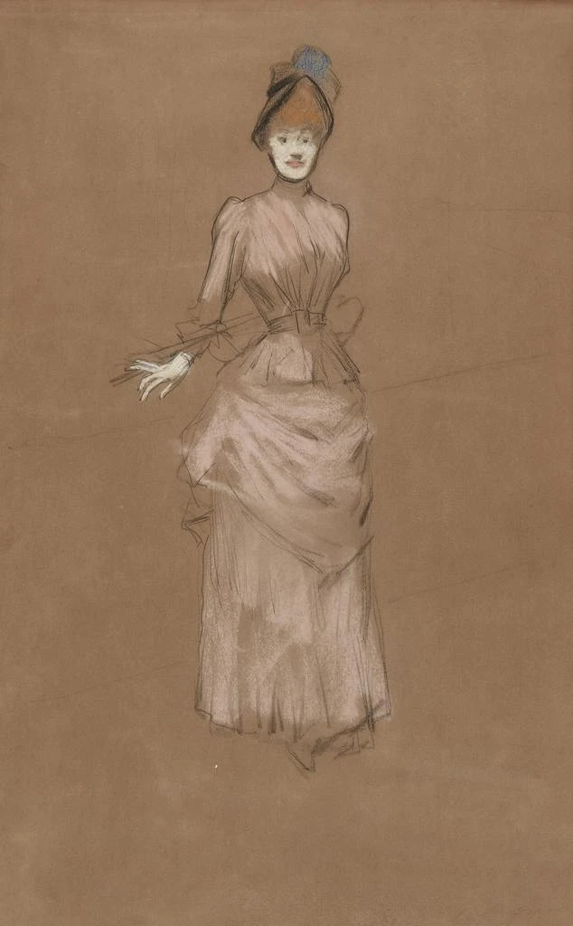 Dans cette konsttryck de l'œuvre "Femme en robe rose", Jean-Louis Forain capture une scène empreinte de délicatesse et de raffinement. La composition met en avant une femme vêtue d'une robe rose, dont les teintes douces se mêlent harmonieusement à un fond flou, créant une atmosphère de rêve. Les coups de pinceau légers et fluides révèlent une maîtrise de la lumière, accentuant les courbes et les plis de la robe. L'ensemble évoque une sensation de mouvement, comme si la figure s'apprêtait à s'élever dans une danse légère, invitant le spectateur à s'immerger dans ce moment suspendu.
