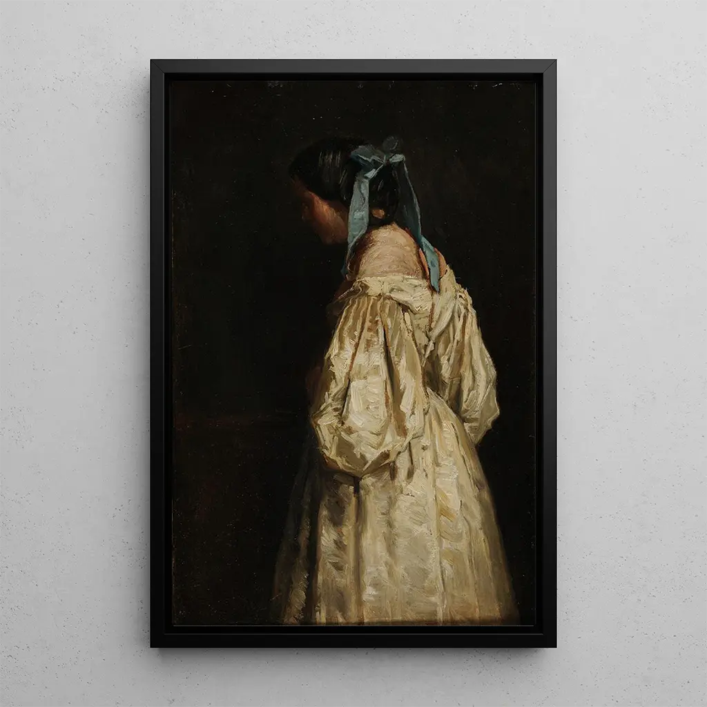 Konsttrycket av "Femme en blanc" av François Bonvin fångar essensen av en tidlös elegans. Denna duk skildrar en kvinna klädd i en vit klänning, badande i ett mjukt och diffust ljus. Nyansen av vitt och kräm blandas harmoniskt, vilket skapar en lugn och rofylld atmosfär. Bonvins teknik, kännetecknad av ett noggrant realism, ger liv åt varje detalj, från klänningens veck till de delikata uttrycken i ansiktet. Konstnären lyckas förmedla en påtaglig känsla, inbjudande betraktaren att fördjupa sig i detta ögonblick av nåd.