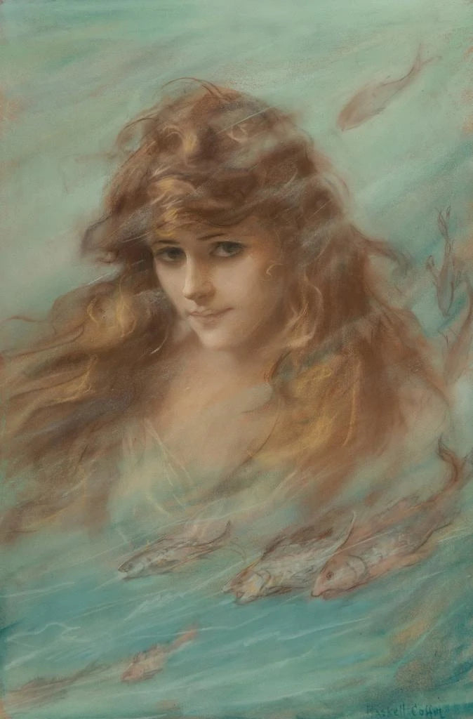 Målning av kvinna bland fisk - Haskell Coffin | Konsttryck