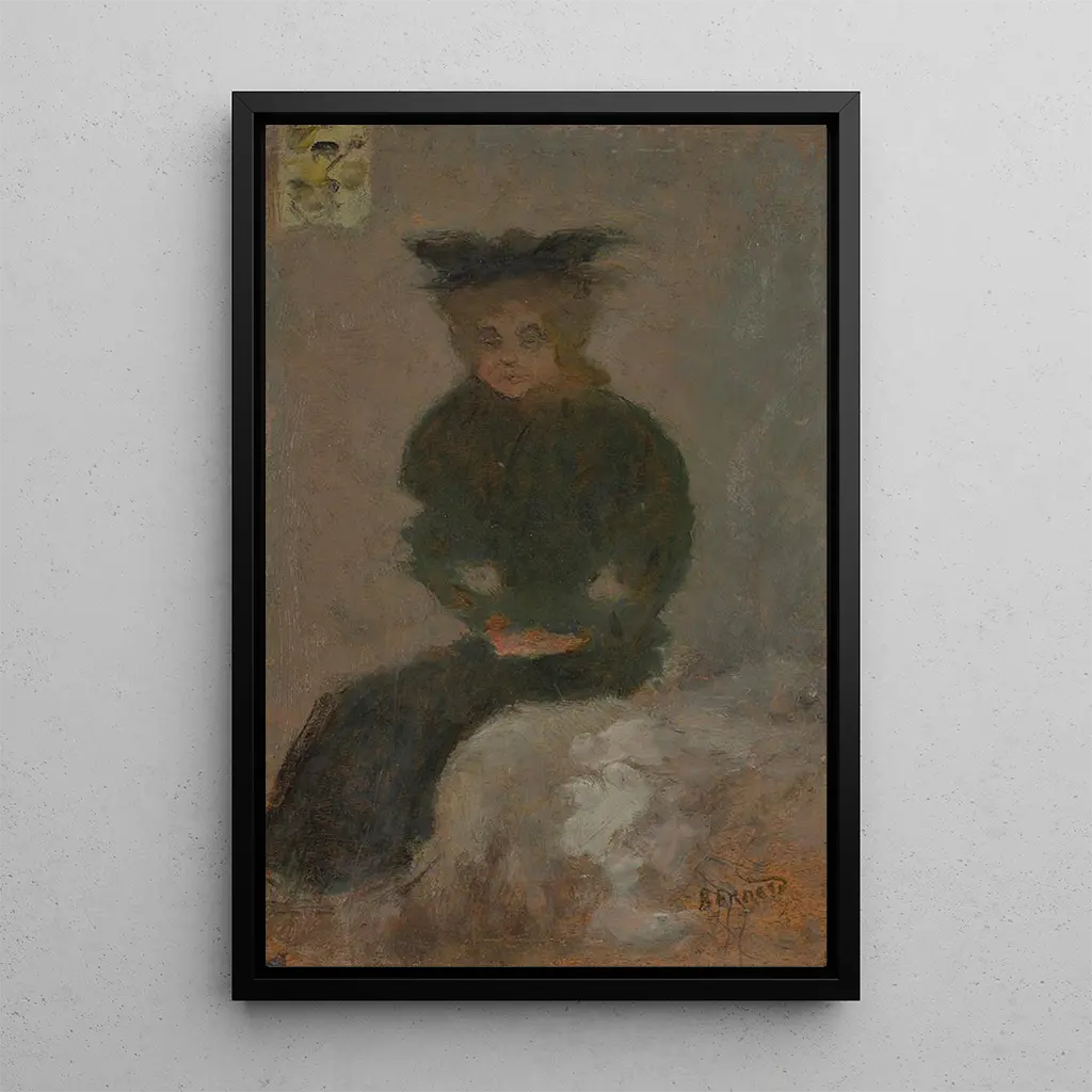 I detta ikoniska verk fångar Pierre Bonnard essensen av en sittande kvinna, elegant klädd i en svart hatt. De varma färgerna och de delikata nyanserna i målningen framkallar en mjuk och intim atmosfär. Ljuset leker med formerna och skapar skuggor som framhäver kvinnans silhuett, medan de blomsterdetaljer i bakgrunden tillför en poetisk touch. Bonnards teknik, som blandar impressionism och post-impressionism, ger detta konsttryck en emotionell djup, inbjudande betraktaren att fördjupa sig i den personliga världen hos modellen.