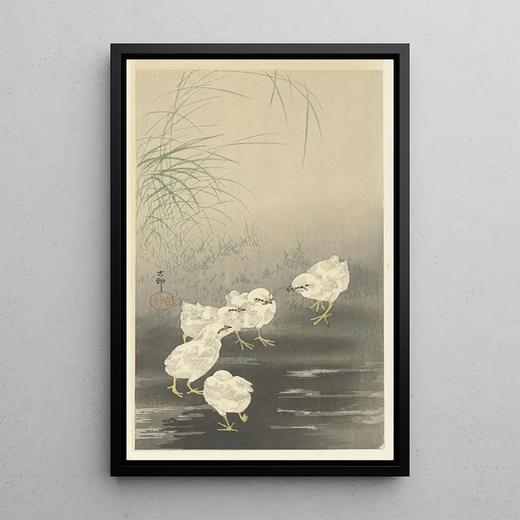 Poussins och mask : en finstämd harmoni av naturen Konsttrycket av verket "Poussins och mask" av Ohara Koson fördjupar oss i en värld fylld av mildhet och lugn. Pusinkarna, avbildade med en anmärkningsvärt noggrann detaljrikedom, verkar framträda ur en fridfull värld, medan masken, symbol för naturen, smälter harmoniskt in i scenen. Pastellfärger, dominerade av mjuka nyanser av gult och grönt, skapar en lugnande atmosfär. Tekniken med trägravyr, karakteristisk för japansk konst, ger denna duk en unik textur, nästan taktil, som inbjuder betraktaren att fördjupa sig i denna delikata skildring av det vilda livet. Ohara Koson: en mästare av japansk ukiyo-e Ohara Koson, verksam under Taisho-perioden (1912-1926), är erkänd som en av de största konstnärerna inom japansk ukiyo-e. Påverkad av traditionerna inom ukiyo-e, lyckades han förena modernitet med kulturellt arv och skapa verk som fångar naturens flyktiga skönhet. Hans avbildningar av fauna och flora är fyllda av en unik känslighet, vilket vittnar om hans respekt för den naturliga världen. Koson påverkades också av västerländska konstnärsrörelser och integrerade element av komposition och färg som berikar hans distinkta stil. Hans verk fortsätter att inspirera och fascinera konstälskare världen över. En dekorativ tillgång med många fördelar Konsttrycket av "Poussins och mask" är ett perfekt dekorativt föremål för olika levnadsutrymmen, oavsett om det är ett vardagsrum, ett kontor eller ett sovrum. Dess utskriftskvalitet garanterar en enastående trohet mot detaljerna i originalverket, vilket gör det möjligt att fullt ut njuta av skönheten i denna naturliga scen. Den estetiska dragningskraften hos denna duk ligger i dess förmåga att tillföra en känsla av lugn och friskhet till ditt hem. Genom att välja detta konsttryck, väljer du ett verk som inte bara förskönar ditt utrymme, utan också väcker en djup koppling till naturen.