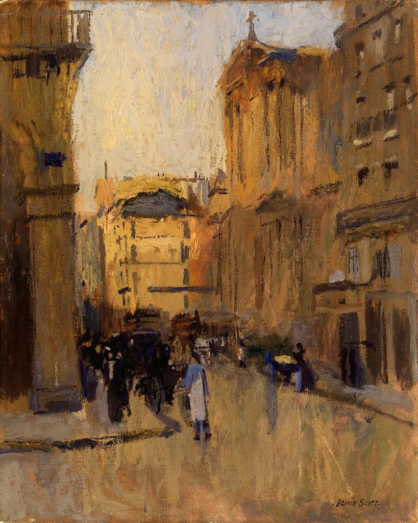 Frank Edwin Scott, en framstående figur i början av 1900-talet, lyckades göra avtryck inom konstvärlden tack vare sin unika vision. Hans förmåga att förena ljus och arkitektur har påverkat många samtida konstnärer, som såg i honom en föregångare till en ny konstnärlig metod. Scott blev inspirerad av de stora mästarna från det förflutna, men sökte också utforska moderna teman, särskilt relationen mellan människan och hennes omgivning. Hans verk är ett vittnesmål om sin tid, men också en reflektion över eviga frågor. Genom sina tavlor bjuder han in oss att återupptäcka ofta glömda platser, att se bortom ytan och känna djupet i de känslor de väcker.