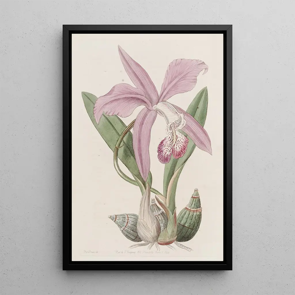 La Laelia Mayflower, ett fascinerande konsttryck av Sydenham Edwards, hyllar skönheten hos orkidéer med en anmärkningsvärt finstämdhet. Detta konsttryck avslöjar subtila nyanser av lila och vitt, och framhäver komplexiteten hos denna sällsynta blomma. Akvarelltekniken, som behärskas av Edwards, möjliggör fångsten av de delikata texturerna hos kronbladen samtidigt som den skapar en mjuk och drömmande atmosfär. Verket inbjuder till noggrann eftertanke och avslöjar naturens gömda skönhet och den harmoni som råder i växtvärlden.