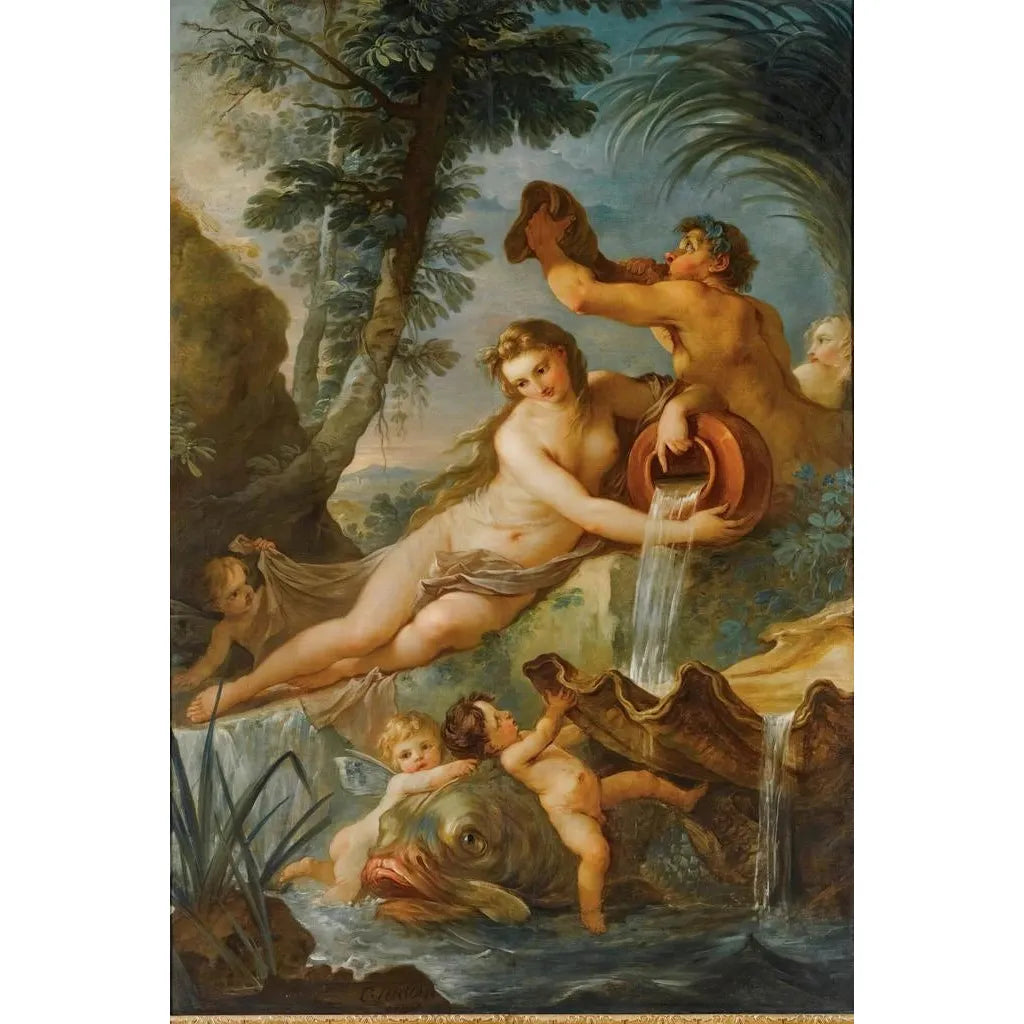 Charles-Joseph Natoire, fransk konstnär från 1700-talet, är ofta förknippad med rokoko-rörelsen, som hyllar elegans och lätthet. Utbildad vid Kungliga akademien för målning och skulptur, påverkades han av konstnärer som François Boucher och Antoine Watteau. Natoire lyckades utmärka sig genom sin förmåga att skildra mytologiska teman och vardagsscener med en touch av sensualitet och poesi. Hans konstverk "La Source" illustrerar perfekt denna metod, där den kvinnliga skönheten står i centrum samtidigt som den integrerar element av naturen, en viktig egenskap i hans stil.