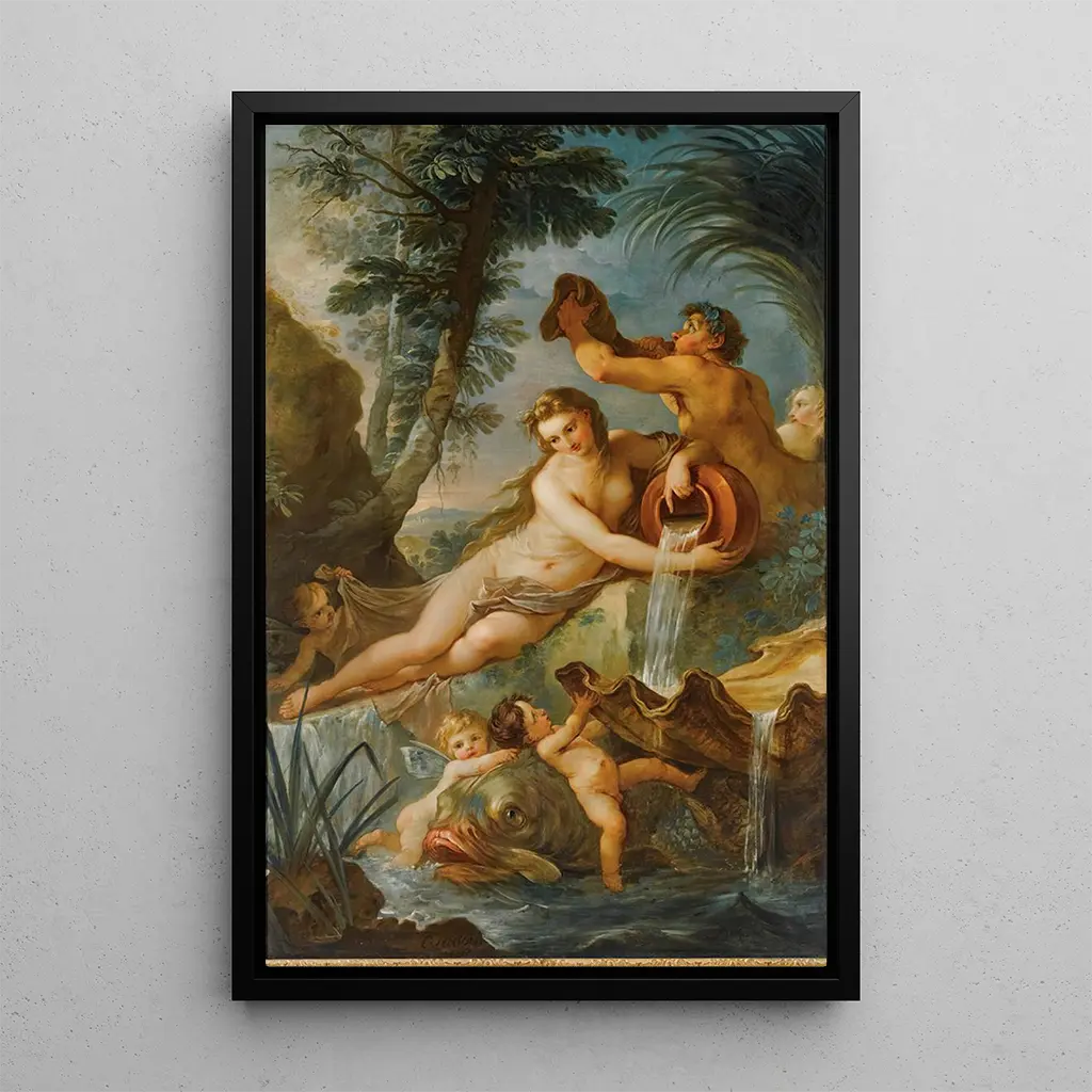 I "La Source" fångar Charles-Joseph Natoire själva essensen av kvinnlig skönhet genom en finstämd och harmonisk komposition. Tavlan skildrar en ung kvinna, symbol för naturen, som framträder ur en kristallklar vattenkälla. Pastellfärger, som blandar blå och gröna nyanser, skapar en lugn och drömmande atmosfär. Natoires teknik, kännetecknad av flytande och precisa penseldrag, ger liv åt denna idylliska scen och bjuder in betraktaren att dyka in i en värld av frid och kontemplation. Varje detalj, från hudens textur till vattnets glans, vittnar om ett enastående hantverk.