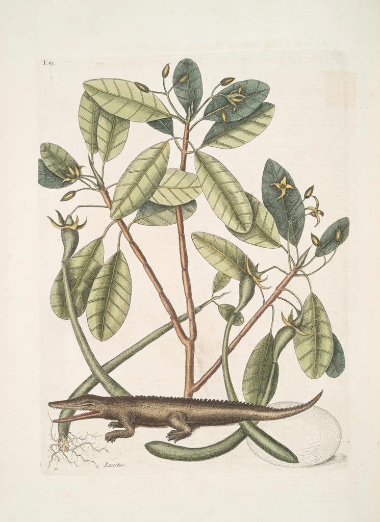 Mark Catesby, verksam på 1700-talet, anses vara en av de första naturalisterna som dokumenterade den amerikanska faunan och floran. Hans resor genom kolonierna ledde till verk som förenar konst och vetenskap, och ger en värdefull inblick i dåtidens biologiska mångfald. Påverkad av barockrörelsen utmärker sig hans stil genom ett stort detaljfokus och en realistisk ansats. "Lacertus L'alligator" vittnar om hans engagemang för att troget återge de arter han observerade, och bidrar till vetenskaplig kunskap samt konstnärlig uppskattning av naturen.