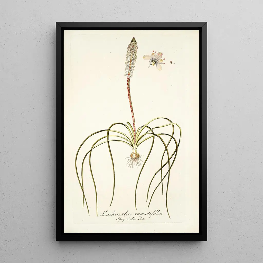 Konsttrycket av Lachenalia angustifolia är ett dekorativt föremål som kommer att försköna ditt boende, oavsett om det är i ett vardagsrum, ett kontor eller ett sovrum. Dess utskriftskvalitet garanterar en anmärkningsvärt trogen återgivning av detaljer och färger i originalverket, och tillför en känsla av friskhet och vitalitet till din inredning. Genom att välja detta konsttryck ger du ditt hem en inbjudan till att beundra naturen, samtidigt som du berikar din omgivning med ett konstverk av stor estetisk och pedagogisk värde.
