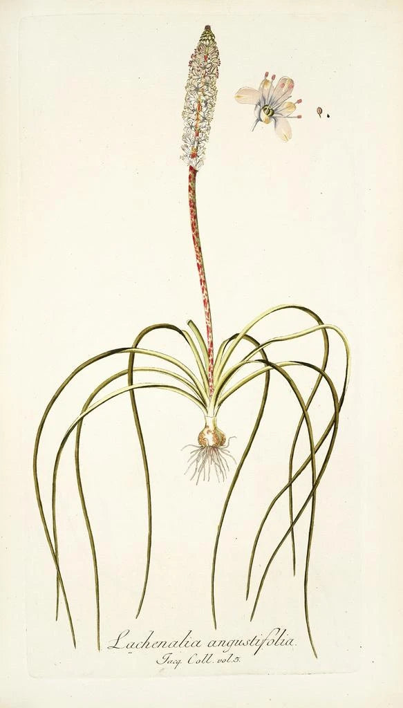 Nikolaus Joseph Freiherr von Jacquin, botanist och konstnär från 1700-talet, präglade sin tid med sina bidrag till botanik och konst. Hans resor runt om i världen gav honom möjlighet att upptäcka och dokumentera många växtarter, inklusive Lachenalia angustifolia. Hans konstnärliga stil, kännetecknad av vetenskaplig precision och estetisk känslighet, speglar Upplysningens anda, där nyfikenhet och utforskning stod i centrum. Jacquin har därmed lämnat ett arv som förenar skönhet och kunskap, och påverkar framtida generationer av konstnärer och vetenskapsmän.