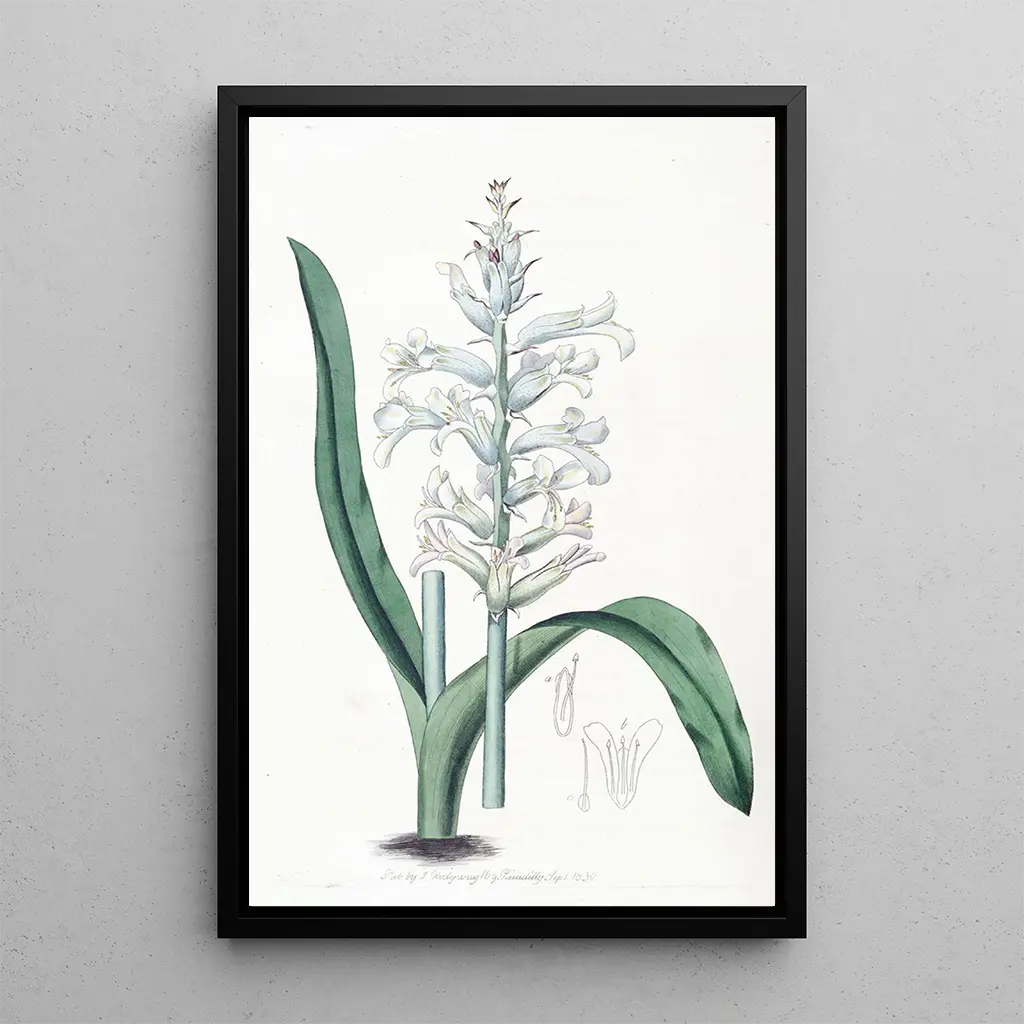 Den konsttryck av verket "Lachenalia à fleurs bleu pâle" av Sydenham Edwards förflyttar oss till en frodig trädgård där färgernas mildhet blandas med formernas finhet. Nyansen av delikat blått, kombinerad med gröna inslag, skapar en visuell harmoni som framkallar lugn. Akvarelltekniken, som behärskas av Edwards, gör det möjligt att återge genomskinlighet och lätthet i blommornas kronblad, vilket ger liv åt denna fascinerande växt. Varje detalj är noggrant återgiven, inbjudande betraktaren att uppskatta naturens subtila skönhet.