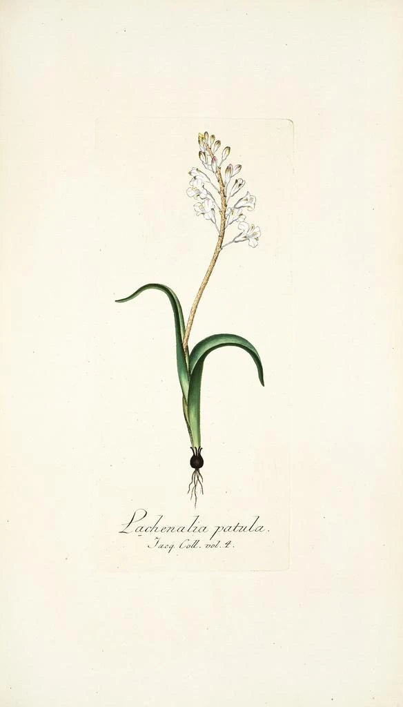 Nikolaus Joseph Freiherr von Jacquin, en framstående figur från 1700-talet, lyckades förena konst och vetenskap genom sina botaniska verk. Den passionerade botanisten reste världen runt för att studera och dokumentera växtarter. Hans konstnärliga tillvägagångssätt, påverkad av rokoko-rörelsen, kännetecknas av en särskild uppmärksamhet på detaljer och en palett av livfulla färger. Konsttrycket av Lachenalia patula, med sin trogna och estetiska återgivning, vittnar om Jacquins betydelse i historien om botanisk konst. Hans verk fortsätter att inspirera konst- och botanikkännare genom tiderna.