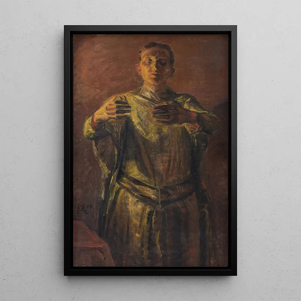 Studie av Lady Macbeth: en utforskning av mänskliga passioner Kristian Zahrtmanns verk "Studie av Lady Macbeth" är en slående skildring av den emotionella intensitet som präglar Shakespeares karaktär. Tavlan, rik på mörka färger och dramatiska nyanser, skapar en atmosfär av spänning och mystik. Zahrtmann använder oljemålningstekniker för att skapa texturer som ger liv åt Lady Macbeths plågade uttryck. Skuggor och ljus blandas skickligt, vilket förstärker protagonistens inre konflikt, medan den suddiga bakgrunden verkar spegla hennes oroliga sinne. Detta konstverk inbjuder till en djup reflektion över mänskliga passioner och ambitionens konsekvenser. Kristian Zahrtmann: en mästare av nordisk symbolism Kristian Zahrtmann, dansk målare från 1800-talet, är erkänd för sin unika stil som förenar symbolism med romantisk känslighet. Påverkad av de stora mästarna inom europeisk konst och litteratur, har Zahrtmann fångat ögonblick av intensiv känsla i sina verk. Hans skapandeperiod sträcker sig huvudsakligen mellan 1880 och 1900, då han utforskade teman relaterade till mytologi, litteratur och mänsklig psykologi. "Studie av Lady Macbeth" är ett exempel på detta, vilket visar på litteraturens betydelse i hans konstnärliga uttryck och hans innovativa syn på skildringen av kvinnliga karaktärer. En dekorativ konsttryck med många fördelar Konsttrycket av "Studie av Lady Macbeth" är ett dekorativt inslag som kan berika vilket utrymme som helst, vare sig det är ett vardagsrum, ett kontor eller ett sovrum. Dess utskriftskvalitet och färgåtergivning gör det till ett perfekt val för den som vill tillföra elegans och djup till sin inredning. Med sin starka estetiska dragningskraft fångar detta konsttryck blickar och väcker samtal, samtidigt som det erbjuder en reflektion över universella teman som ambition och tragedi. Att investera i detta konsttryck innebär inte bara att försköna sitt utrymme, utan också att bjuda in till reflektion över mänskliga passioner.