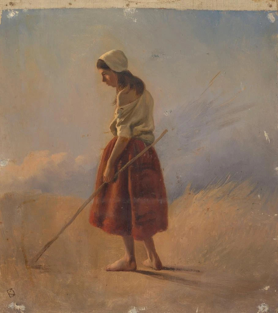 Stående bondkvinna med käpp - Johan Daniël Koelman