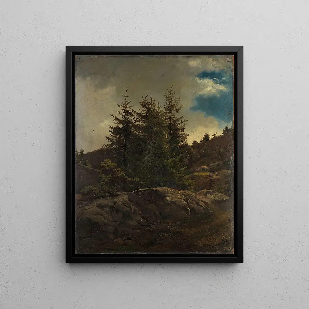 Adolph Tidemand, född 1814, är en av de mest ikoniska representanterna för den norska romantiken. Hans konstnärliga karriär präglas av en outtröttlig strävan efter naturlig skönhet och en vilja att förmedla landets själ genom sina verk. Tidemand hämtar inspiration från norska landskap, men också från folktraditioner, och integrerar kulturella element i sina kompositioner. Hans inflytande på norsk konst är obestridligt, och han har banat väg för andra konstnärer genom att uppmuntra dem att utforska teman som natur och nationell identitet. Hans stil, som förenar teknisk precision med känslomässig känslighet, fortsätter att inspirera många samtida målare, vilket gör honom till en oumbärlig figur i skandinavisk konsthistoria.