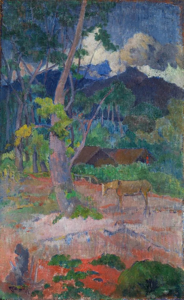 I "Paysage med en häst" förflyttar Paul Gauguin oss till en vibrerande värld där naturen och djuret möts i en färgstark harmoni. De varma och jordnära nyanserna, typiska för hans stil, skapar en atmosfär som är både lugn och mystisk. Hästen, majestätisk och lugn, verkar smälta in perfekt i detta frodiga landskap, där stiliserade former och djärva färger inbjuder till eftertanke. Gauguins teknik, som kombinerar impressionism och symbolism, ger liv åt denna scen och avslöjar en emotionell djup som överskrider den enkla dekoren.