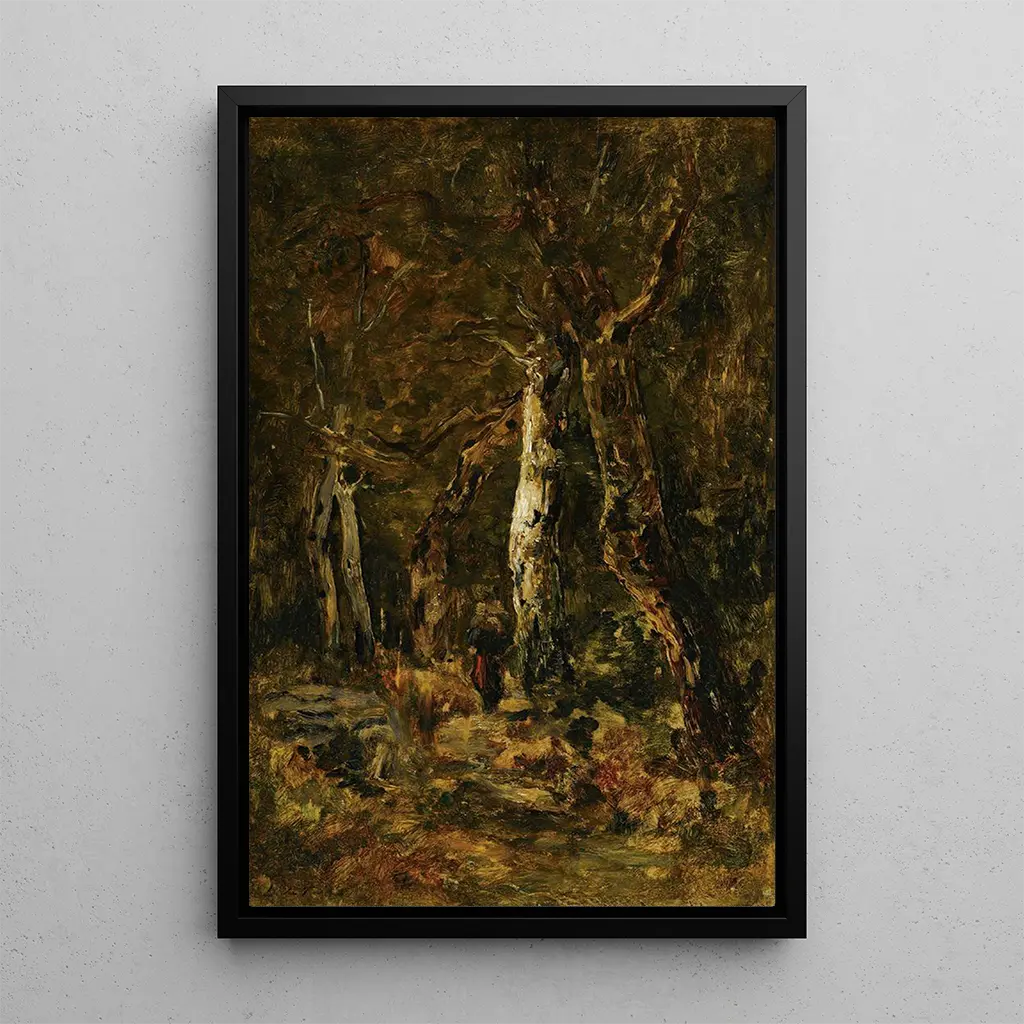 Den konsttryck av landskapsmålning med figur förflyttar oss till en värld där naturen och mänskligheten samexisterar i perfekt harmoni. De rika och livfulla färgerna, från djupa gröna till jordnära bruna, skapar en varm och inbjudande atmosfär. László Pál, genom sin oljemålningsteknik, lyckas fånga ljuset som dansar över bladen och stammarna, samtidigt som han skildrar en mänsklig figur som verkar integreras naturligt i denna förtrollande miljö. Verket väcker en djup koppling mellan individen och dess omgivning, en inbjudan till eftertanke.