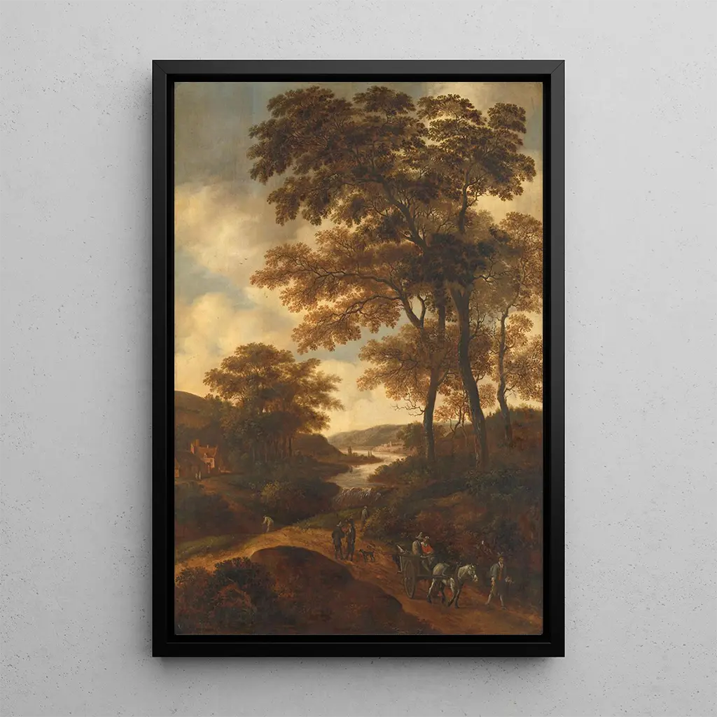 Konsttrycket "Paysage boisé" av Pieter Jansz van Asch fördjupar oss i en frodig natur, där majestätiska träd sträcker sig mot himlen. Kompositionen är rik på detaljer, med en färgpalett som framkallar friskhet och vitalitet i skogen. Ljusspelet som filtreras genom lövverket skapar en atmosfär som är både lugn och dynamisk. Van Asch, med sin skickliga teknik, lyckas fånga själva essensen av detta landskap och inbjuder betraktaren att fördjupa sig i denna idylliska scen. Varje penseldrag tycks andas liv, och hyllar naturens vilda skönhet.