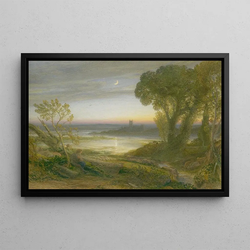 Le Couvre-feu : une poésie nocturne La reproduction de Le Couvre-feu nous transporte dans une scène nocturne empreinte de mystère et de sérénité. Les teintes sombres, rehaussées par des touches de lumière, créent une atmosphère presque onirique. Samuel Palmer, maître du paysage romantique, utilise la technique de l’aquarelle pour capturer la magie des heures crépusculaires. Les silhouettes des arbres et des bâtiments se dessinent avec délicatesse, tandis que la lumière de la lune semble danser sur le tableau. Cette œuvre invite à la contemplation, offrant un moment de pause dans le tumulte de la vie quotidienne. Samuel Palmer : un pionnier du romantisme anglais Samuel Palmer, actif au XIXe siècle, est reconnu comme l'un des pionniers du romantisme anglais. Influencé par la nature et les paysages bucoliques, il a su développer un style unique, mêlant réalisme et idéalisation. Ses œuvres, souvent inspirées par ses promenades dans la campagne anglaise, reflètent une quête spirituelle et une connexion profonde avec la nature. Le Couvre-feu est emblématique de cette recherche, illustrant la beauté des paysages nocturnes tout en évoquant des thèmes de tranquillité et de contemplation. Palmer a laissé une empreinte indélébile sur l'art britannique, inspirant de nombreux artistes après lui. Une acquisition décorative aux multiples atouts Choisir la reproduction de Le Couvre-feu, c'est faire le choix d'une œuvre qui saura embellir votre intérieur. Que vous l'accrochiez dans un salon, un bureau ou une chambre, ce tableau apporte une atmosphère apaisante et poétique. Sa qualité de reproduction assure une fidélité aux détails et aux couleurs, permettant de profiter pleinement de la vision artistique de Palmer. L'attrait esthétique de cette toile en fait un choix idéal pour ceux qui souhaitent enrichir leur décoration avec une touche de romantisme et de sérénité. En intégrant cette œuvre à votre espace, vous créez un environnement inspirant et chaleureux.