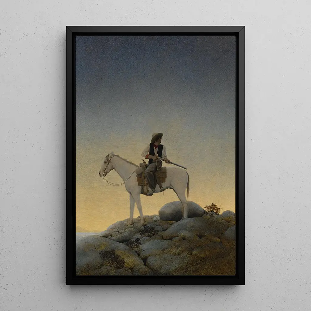 "Le Hors-la-loi" de Maxfield Parrish est une œuvre captivante qui évoque des récits d'aventure et de mystère. Dans cette toile, un hors-la-loi charismatique se dresse fièrement, entouré d'un paysage à la fois sauvage et enchanteur. Les couleurs riches et les jeux de lumière créent une atmosphère dramatique, où chaque détail semble raconter une histoire. La maîtrise de la lumière par Parrish, avec ses nuances dorées et ses ombres profondes, confère à cette konsttryck une dimension presque cinématographique, invitant le spectateur à plonger dans un monde de légendes et de bravoure.
