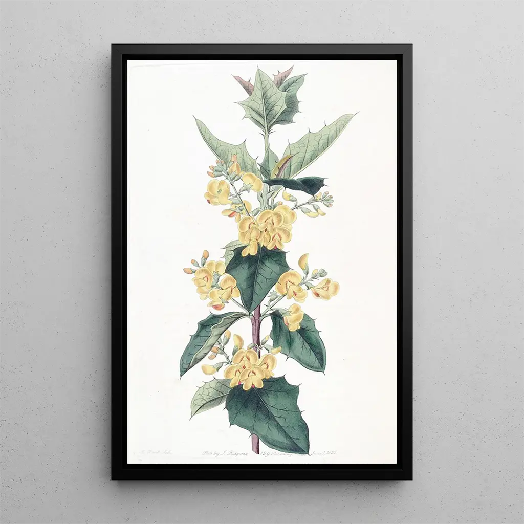 Podolobium trelobed, illustrerad av Sydenham Edwards, utmärker sig genom sina unika former och sina slående färger. Detta konsttryck avslöjar en fascinerande växtvärld, där nyanser av gult och grönt harmoniserar för att skapa en fängslande komposition. Tekniken som används framhäver detaljerna i bladen och blommorna, vilket ger en nästan taktil känsla av denna växt. Varje element är noggrant återgivet, inbjudande betraktaren att utforska biodiversitetens rikedom. Detta konsttryck av podolobium trelobed är en hyllning till naturen, perfekt för dem som uppskattar botanisk skönhet.