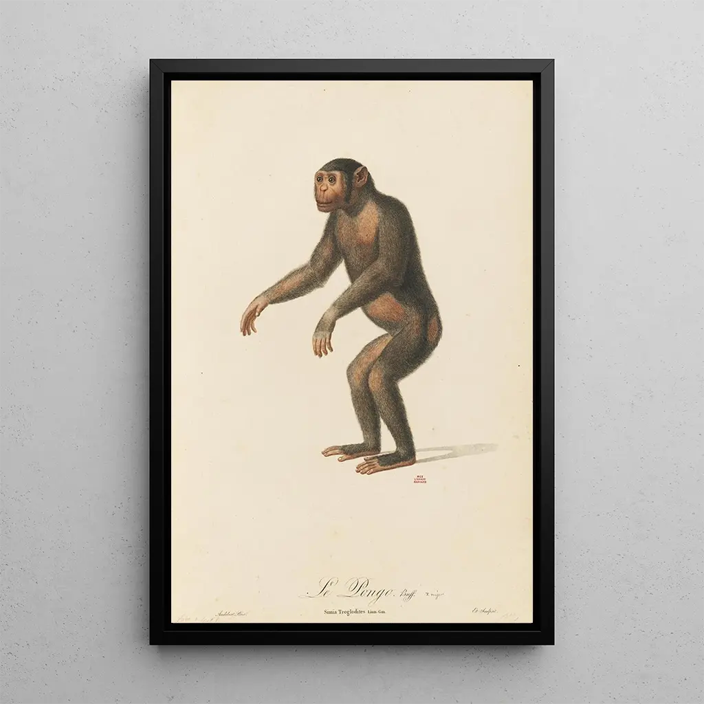 Le Pongo, ett fascinerande konsttryck av Jean-Baptiste Audebert, för oss in i den mystiska världen av primater. Denna målning kännetecknas av varma och jordnära nyanser som återspeglar rikedomarna i tropiska regnskogar. Audebert, med en enastående skicklighet, fångar själva essensen av detta majestätiska djur, dess delikata drag och sitt uttrycksfulla blick. Atmosfären i verket är både fängslande och känslosam, och inbjuder betraktaren att reflektera över skönheten och livets sårbarhet i det vilda.