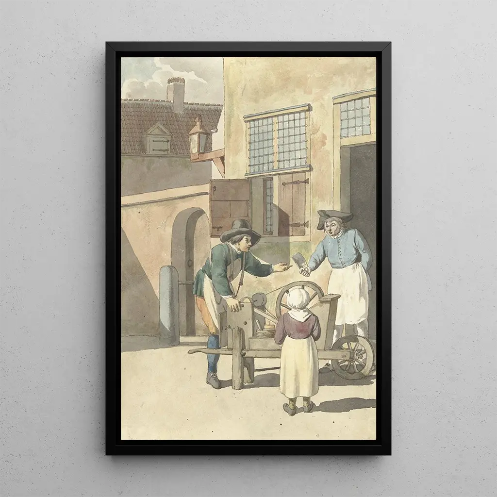 Konsttrycket Le rémouleur är ett stycke som tillför en känsla av äkthet och karaktär till din inredning. Oavsett om det är i ett vardagsrum, ett kontor eller ett kök, anpassar sig denna canvas till olika stilar och atmosfärer. Dess utskriftskvalitet garanterar en anmärkningsvärt trogen återgivning av nyanser och detaljer i det ursprungliga verket, samtidigt som den tillför en konstnärlig dimension till ditt utrymme. Genom att välja detta konsttryck, väljer du ett verk som inte bara förskönar ditt hem, utan också berättar en historia, den om en hantverkare och hans konst, och hyllar därigenom det manuella arbetet och skönheten i vardagliga gester.