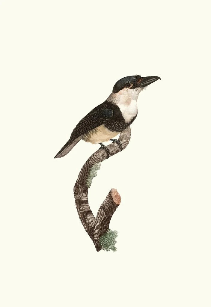 Jacques Barraband, illustrateur et peintre du début du XIXe siècle, est célèbre pour ses représentations d'oiseaux qui allient réalisme et sensibilité artistique. Son travail s'inscrit dans un contexte où l'étude des espèces aviaires prenait de l'ampleur, et il a su se démarquer par son style unique. Barraband a été influencé par les explorations scientifiques de son temps, ce qui lui a permis de créer des œuvres qui sont à la fois informatives et esthétiques. Le Tamatia plastron noir est un exemple parfait de son talent, témoignant de l'importance de la représentation de la nature dans l'art.