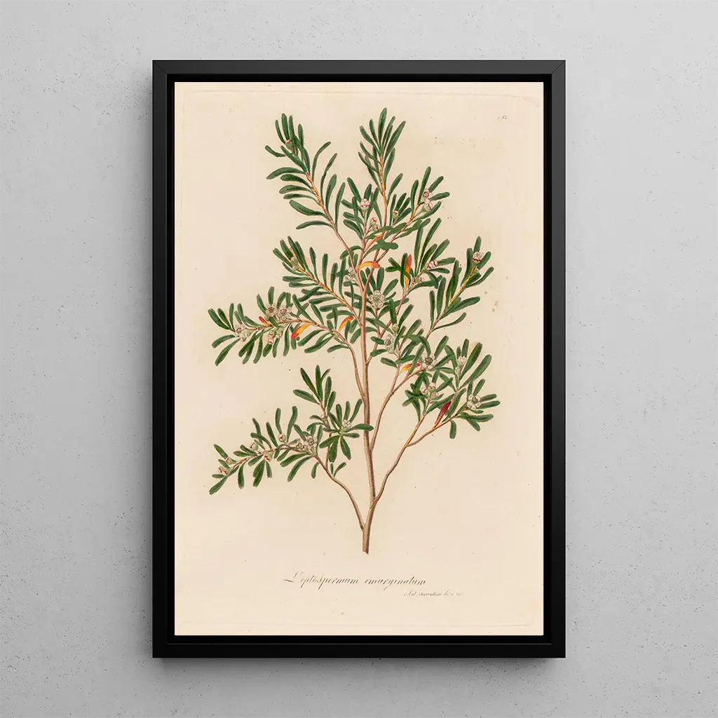 Konsttrycket av Leptospermum emarginatum är ett dekorativt föremål som passar perfekt i olika miljöer, oavsett om det är ett modernt vardagsrum, ett inspirerande kontor eller ett lugnande sovrum. Dess utskriftskvalitet garanterar en enastående trohet mot detaljerna i det ursprungliga verket, samtidigt som det tillför en naturlig touch till ditt hem. Denna tavla, med sin estetiska dragningskraft, inbjuder till kontemplation och lugn, och förvandlar ditt utrymme till en fristad av fred och naturlig skönhet.
