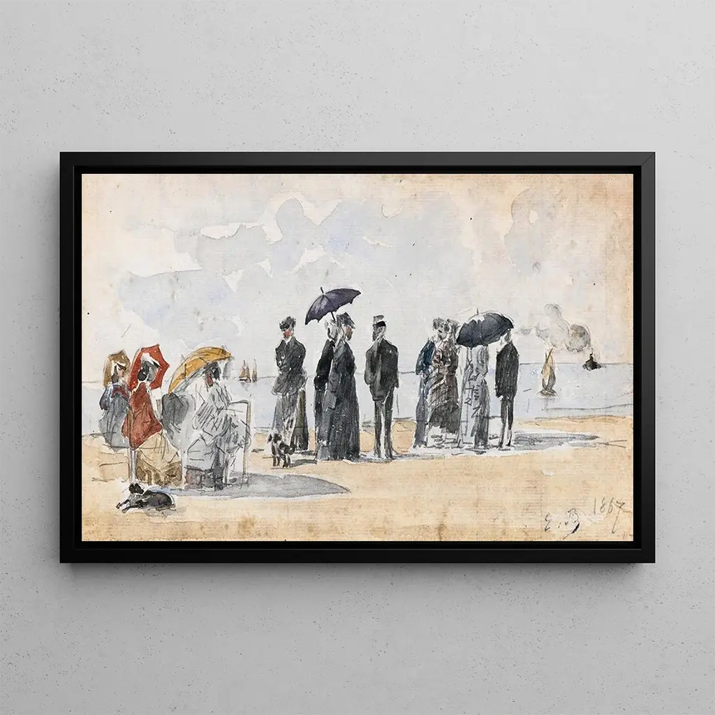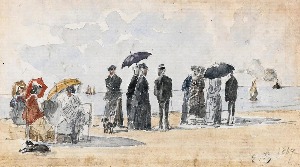 Eugène Boudin est souvent considéré comme l'un des précurseurs de l'impressionnisme, ayant influencé des artistes tels que Claude Monet. Né en 1824 à Honfleur, il a commencé sa carrière en peignant des paysages marins avant de se tourner vers des scènes de la vie quotidienne. Son style se caractérise par une attention particulière à la lumière et à l'atmosphère, des éléments qui sont omniprésents dans Les Crinolines. Boudin a également été l'un des premiers artistes à peindre en plein air, une pratique qui deviendra emblématique du mouvement impressionniste. Son œuvre témoigne d'une époque où l'art commençait à s'affranchir des conventions académiques.