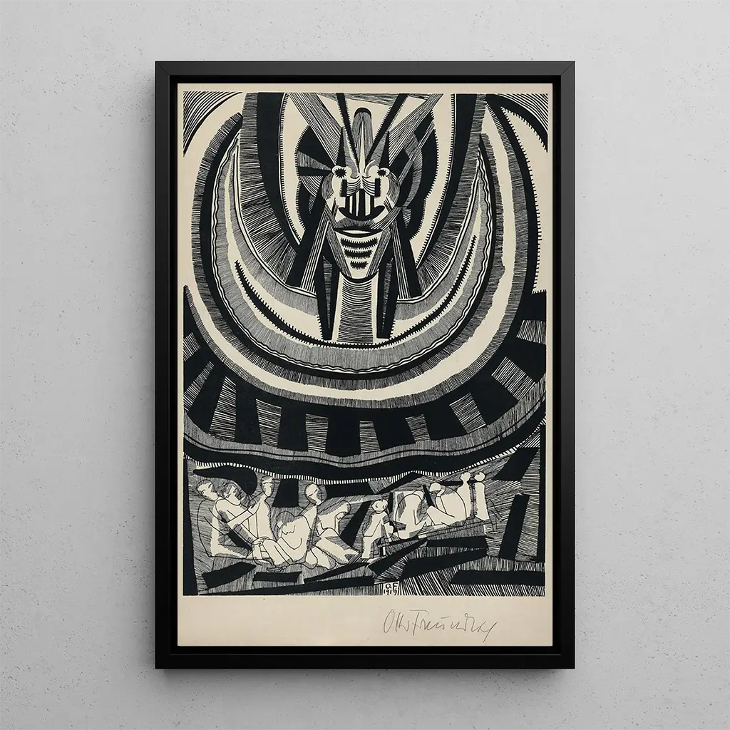I "Les signes Pl6" dykker Otto Freundlich ned i en livlig verden hvor geometriske former veves sammen med strålende farger. Den dynamiske komposisjonen fremkaller en dialog mellom abstraksjon og følelser, og skaper en atmosfære som er både energisk og kontemplativ. De varme og kalde nyansene møtes, og tilbyr en slående kontrast som fanger blikket og inviterer til dyp refleksjon. Freundlichs teknikk, som kombinerer maling og skulptur, gir dette kunsttrykket en taktil dimensjon, nesten håndgripelig, som overskrider den enkle visuelle fremstillingen.