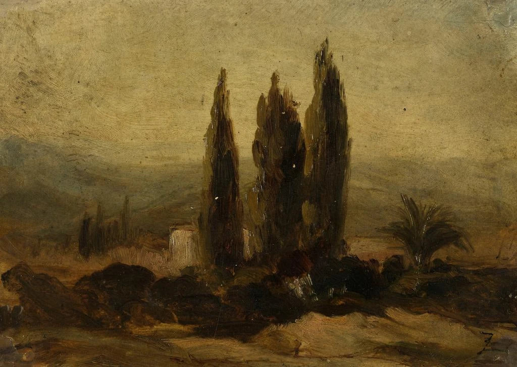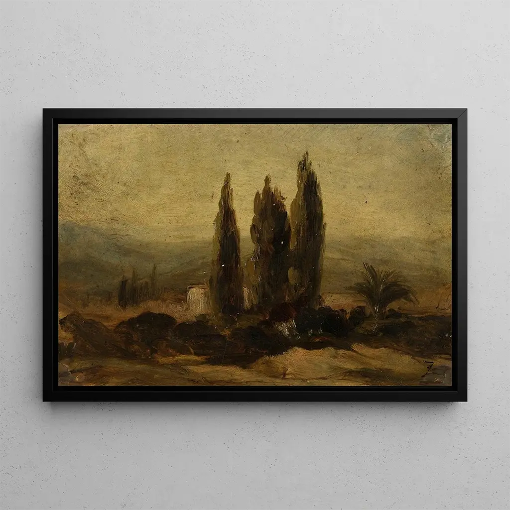 Félix Ziem, peintre français du XIXe siècle, est reconnu pour ses paysages marins et ses vues de Venise. Influencé par le romantisme, il développe un style unique qui allie réalisme et impressionnisme. Ziem voyage à travers l'Europe, capturant la lumière et les couleurs des différents lieux qu'il visite. Son œuvre est marquée par une sensibilité à la nature, et il est souvent considéré comme un précurseur des artistes impressionnistes. Sa capacité à traduire l’émotion d’un paysage en fait une figure emblématique de son époque, et "Les Trois cyprès" en est un parfait exemple de son talent.