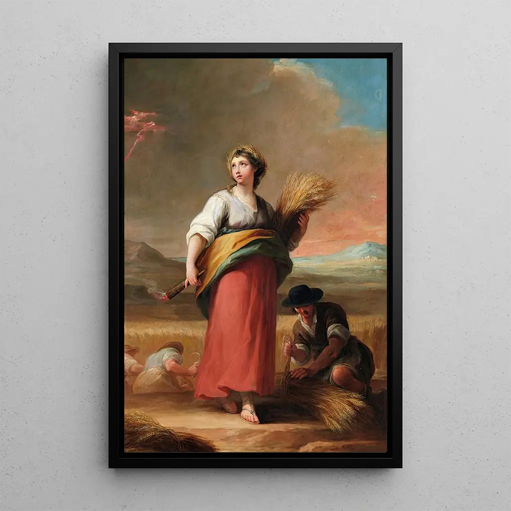 konsttryck "L'été" av Mariano Salvador Maella framkallar en säsong av fulländning, där det gyllene ljuset översvämmar landskapet. De varma färgerna, från lysande gult till djupa orange, skapar en livfull och glad atmosfär. Kompositionen är noggrant balanserad, med naturliga element som vävs samman i harmoni och bjuder in betraktaren att fördjupa sig i denna sommarscen. De minutiösa detaljerna hos figurer och landskap vittnar om en behärskad teknik, där varje penseldrag tycks fånga själva essensen av sommaren, vilket gör konsttrycket både levande och tidlöst.