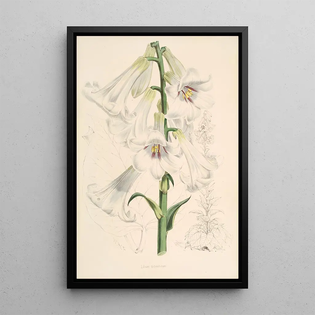 Walter Hood Fitch, botaniker och illustratör från 1800-talet, är erkänd för sin viktiga roll i dokumentationen av växter genom sina konsttryck. Utbildad vid konstakademin, påverkades Fitch av de vetenskapliga upptäckterna i sin tid, särskilt inom botanik. Hans verk, ofta publicerade i referensverk, har bidragit till att utöka kunskapen om växtarter. Som konstnär lyckades han förena vetenskaplig noggrannhet med estetisk känsla, vilket gör hans konsttryck till eftertraktade föremål för både forskare och konstälskare. Lilium giganteum är ett perfekt exempel på hans unika tillvägagångssätt, där varje detalj noggrant observeras och återges.