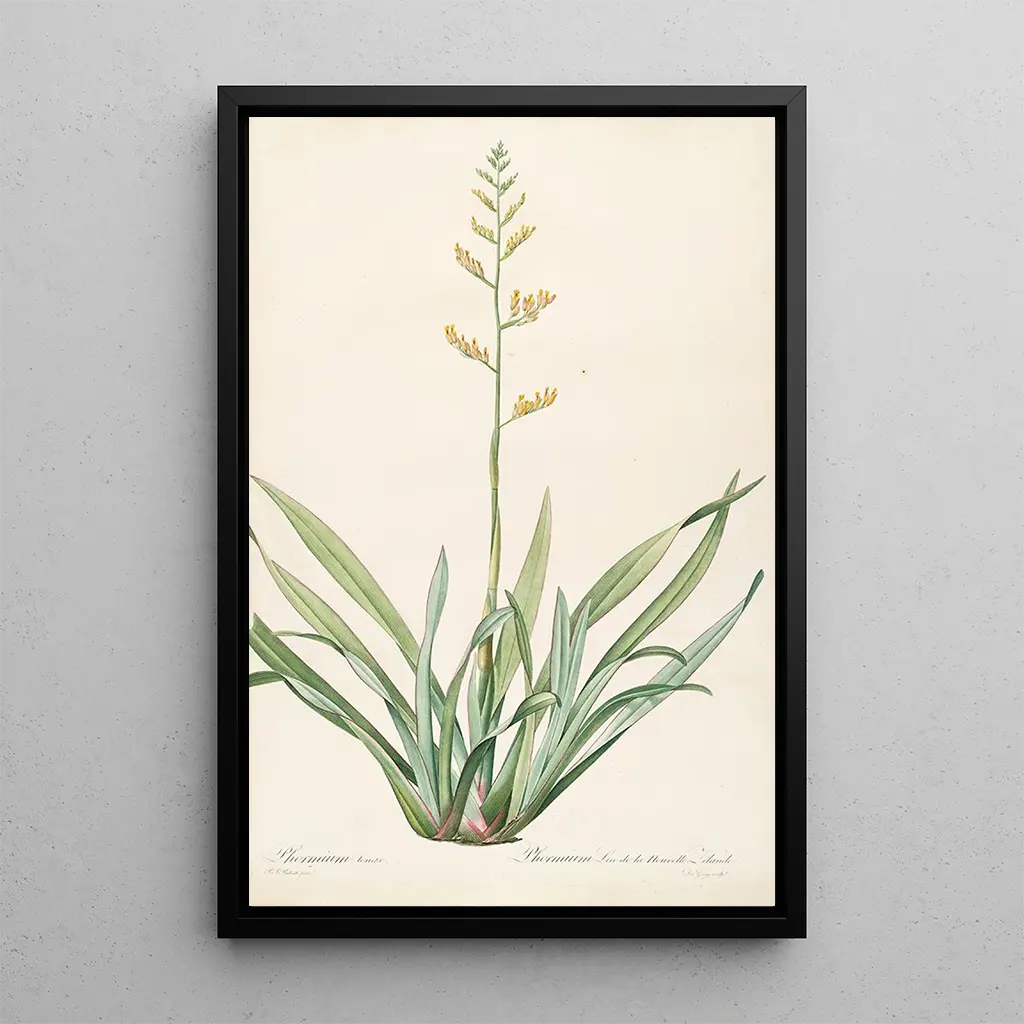 I denna delikata konsttryck av verket "Les liliacées Pl27" bjuder Pierre Joseph Redouté in oss att fördjupa oss i en botanisk värld fylld av poesi. Kompositionen framhäver blommor med delikata kronblad, noggrant detaljerade, som nästan känns påtagliga. Färgerna, från mjuka nyanser till livfulla toner, skapar en fängslande visuell harmoni. Akvarelltekniken, som behärskas av Redouté, ger varje blomma ett unikt ljus, medan den allmänna atmosfären för tankarna till en blomstrande trädgård. Detta konsttryck är en sann hyllning till naturen, där varje detalj är en hyllning till den flyktiga skönheten hos L.