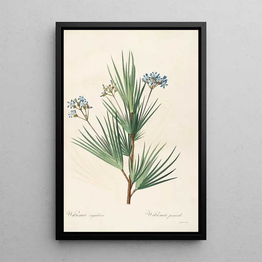 Konsttrycket av 'Les liliacées Pl32' fördjupar oss i en blomstrande värld av färg, där varje blomma tycks vibrera av liv. De livfulla nyanserna av gult, blått och lila blandas harmoniskt och skapar en dynamisk och glad tavla. Med sin akvarellteknik lyckas Pierre Joseph Redouté fånga ljuset och texturen i blombladen, vilket gör varje detalj nästan kännbart. Verket framkallar en känsla av vårfräschör, inbjuder till drömmar och flykt i naturens hjärta.