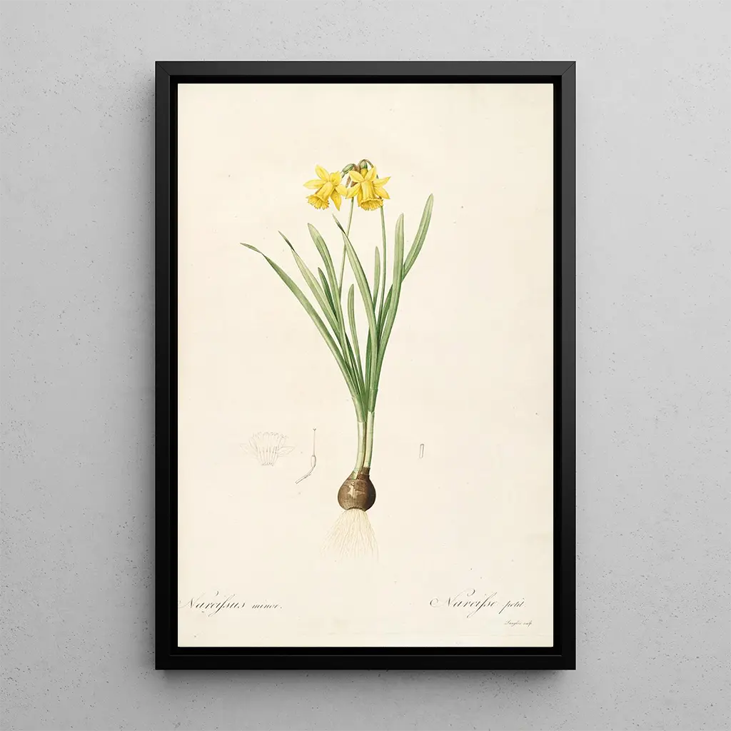 Konsttrycket av Les Liliacées Pl59 för oss till en hemlig trädgård, där varje blomma verkar berätta en historia. Pastellnyanser, från mjukt rosa till ljusgul, framkallar sötma och lätthet. Med sin akvarellteknik lyckas den fånga det dansande ljuset på kronbladen, vilket skapar en nästan magisk atmosfär. Detta verk, med sin slående realism och sin delikata elegans, inbjuder oss att återupptäcka växternas skönhet, samtidigt som det hyllar den blomstrande biodiversitetens rikedom.