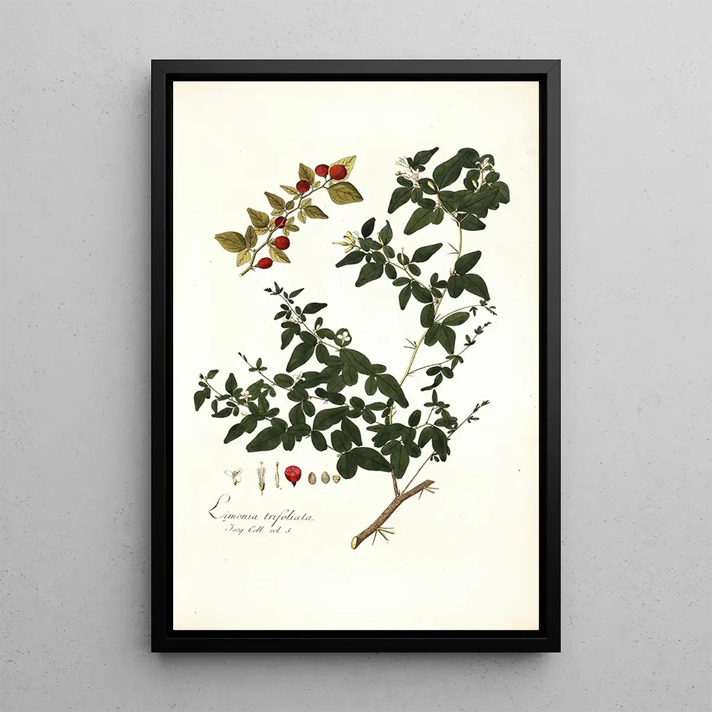 Att välja ett konsttryck av Limonia trifoliata innebär att välja ett dekorativt föremål som tillför en touch av exotism till ditt hem. Oavsett om det är i vardagsrummet, på kontoret eller i sovrummet, kommer detta konsttryck att fängsla blickarna och väcka samtal. Kvaliteten på trycket garanterar en enastående trohet mot färger och detaljer i originalverket, samtidigt som det erbjuder en tydlig estetisk attraktion. Genom att integrera detta konsttryck i din inredning bjuder du in naturens skönhet att blomstra i ditt boende, och skapar en varm och inspirerande atmosfär.