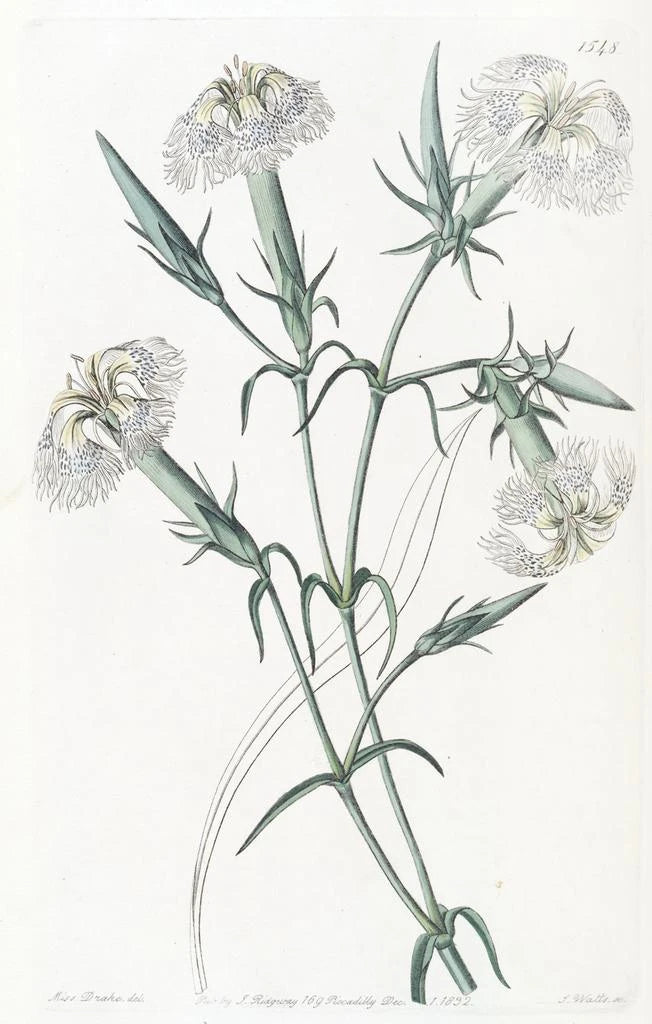 Sydenham Edwards, aktiv i början av 1800-talet, är erkänd för sina bidrag till illustration av botanik. Utbildad inom gravyrkonst, lyckades han förena vetenskaplig precision med konstnärlig känsla. Hans verk, ofta publicerade i botaniska verk, har spelat en avgörande roll i dokumentationen av exotiska växter från den tiden. L'Œillet du Liban är ett perfekt exempel på hans karakteristiska stil, där den naturliga skönheten lyfts fram med vetenskaplig noggrannhet. Edwards påverkades av de botaniska upptäckter som gjordes under hans tid, vilket gjorde att han kunde fånga sällsynta arter med en oöverträffad precision.