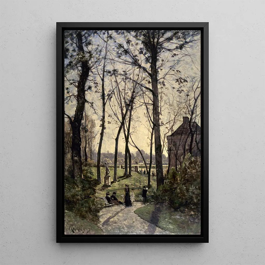 Henri-Joseph Harpignies, peintre paysagiste du XIXe siècle, a su capturer la beauté des paysages français, notamment ceux de la région parisienne. Son style, influencé par l'impressionnisme, se caractérise par une utilisation subtile de la lumière et des couleurs. Harpignies a été un fervent défenseur de la nature, et ses œuvres témoignent d'une époque où l'art se tournait vers la représentation des scènes de la vie quotidienne. En peignant des lieux emblématiques comme le jardin du Luxembourg, il a contribué à immortaliser la beauté de Paris, tout en inspirant de nombreux artistes de sa génération.