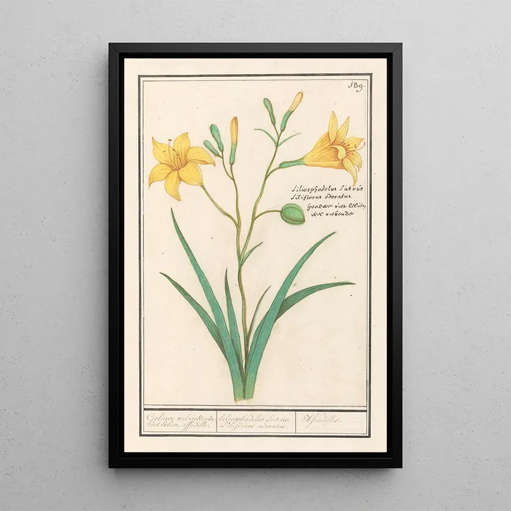 "" av Anselmus Botius de Boodt är ett konsttryck som framkallar grace och elegans hos blommorna. Denna konsttryck framhäver ett gult lilium, symbol för renhet och skönhet, vars delikata kronblad nästan känns påtagliga. Nyanser av gult, förstärkta av inslag av grönt och vitt, skapar en ljus och lugnande atmosfär. Oljetekniken möjliggör fångst av de minsta detaljerna i blomman, och hyllar naturens prakt. Varje penseldrag vittnar om en noggrann uppmärksamhet på den trogna avbildningen av denna botaniska underverk.