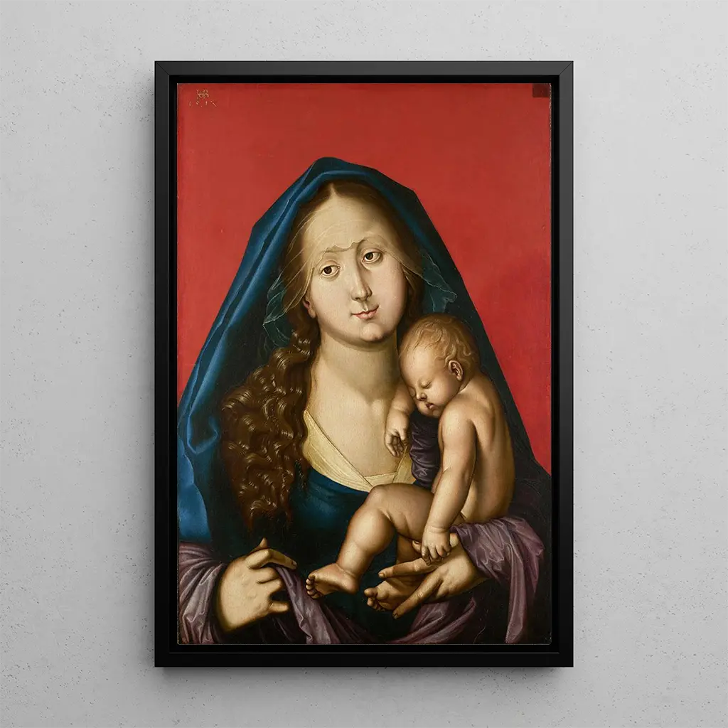 Madone à l'Enfant endormi är ett konsttryck fyllt av mildhet och lugn. I denna målning fångar Hans Baldung ett ögonblick av fred mellan Jungfru Maria och det sovande Jesusbarnet, inbäddade i varma nyanser av rött och guld. Kompositionen är noggrant balanserad och framhäver moderns ömhet som vakar över sitt sovande barn. De delikata detaljerna i draperingarna och ansiktsuttrycken skapar en intim, nästan helig atmosfär, som bjuder in betraktaren till tyst meditation. Det mjuka ljuset som badar scenen förstärker den andliga dimensionen av denna konsttryck, vilket gör det till ett verkligt mästerverk inom religiös konst.