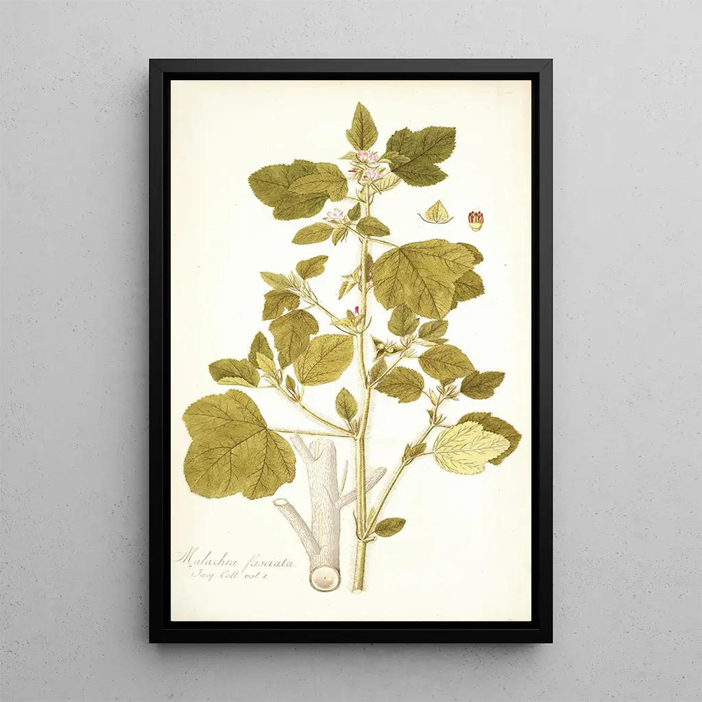 Konsttrycket av Malachra fasciata, ett verk av Nikolaus Joseph Freiherr von Jacquin, för oss in i en frodig värld där naturen uttrycker sig med glans. Denna målning, rik på detaljer, framhäver de delikata bladen och de livfulla blommorna hos denna tropiska växt. Skiftningarna av grönt, gult och lila flätar sig harmoniskt samman och skapar en atmosfär som är både lugnande och uppfriskande. Konstnärens teknik, som kombinerar botanisk precision med konstnärlig känslighet, inbjuder oss att betrakta den flyktiga skönheten i floran. Varje penseldrag verkar fånga ljuset och hylla naturens storhet.