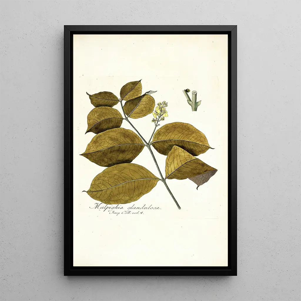 Konsttrycket av Malpighia glandulosa är ett dekorativt föremål som kan förhöja vilket utrymme som helst, oavsett om det är ett vardagsrum, ett kontor eller ett sovrum. Dess tryckkvalitet, trogen originalverket, garanterar en sofistikerad estetik och hållbarhet över tid. Genom att välja denna canvas tillför du en touch av naturen till din inredning och hyllar växternas skönhet. Detta verk är en verklig tillgång för att skapa en varm och välkomnande atmosfär i ditt hem.